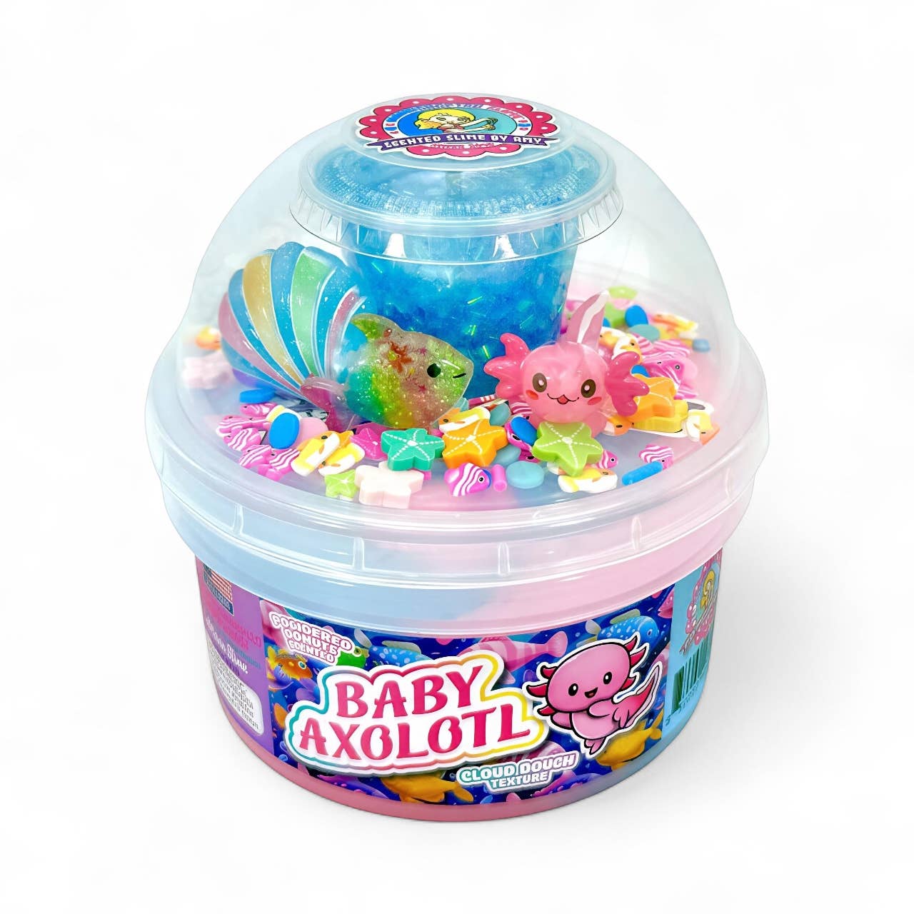 Baby Axolotl is an irresistibly cute slime that’s as sweet as it looks! Scented like yummy powdered donuts, this thick cloud dough slime features a soft swirl of pastel pink and blue for the perfect dreamy vibe. Each jar comes with an adorable axolotl charm and a glittery bingsu bead drizzle so you can decorate it yourself for that extra sparkle and crunch. It's a cuddly, colorful treat that’s perfect for slime lovers who adore all things whimsical and squishy!