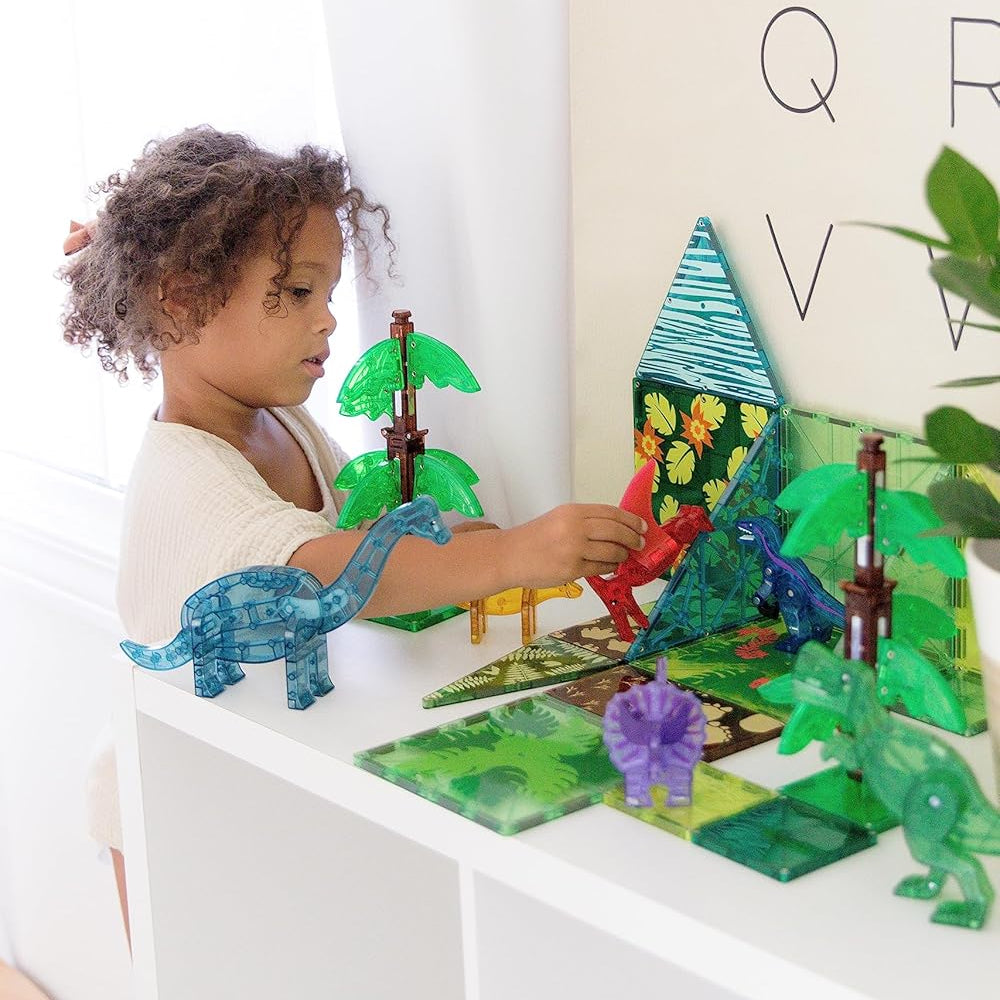 Roar into action with all six MAGNA-TILES dinosaur figures and massive XL magnetic tiles—four times bigger than standard pieces for colossal creations! This 50-piece set introduces groundbreaking extendable magnetic trees that stretch imagination to new heights. Certified STEAM toy by Dr. Gummer's Good Play Guide, it nurtures fine motor skills, cognitive development, language growth, and collaborative creativity. Build a prehistoric world that's as epic as the dinosaurs themselves!