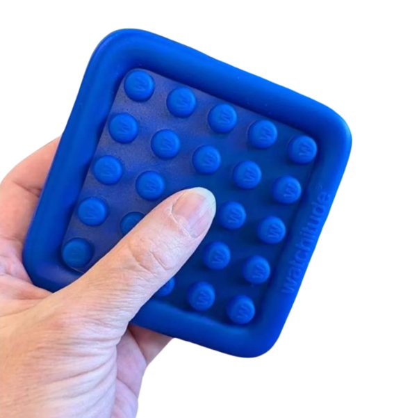 Enjoy the satisfying sensation of popping bubbles repeatedly without using traditional bubble wrap! Made from high-quality, bendable silicone for long-lasting use. Compact design 3.75" x 3.75" inches makes it easy to carry anywhere! Available in Navy, Blue, Red, Pink, Green, and Purple. Helps reduce stress and anxiety for children and adults alike. Sold individually, when you order online, well surprise you with a random color delivered right to your door! Suitable for children aged 4+