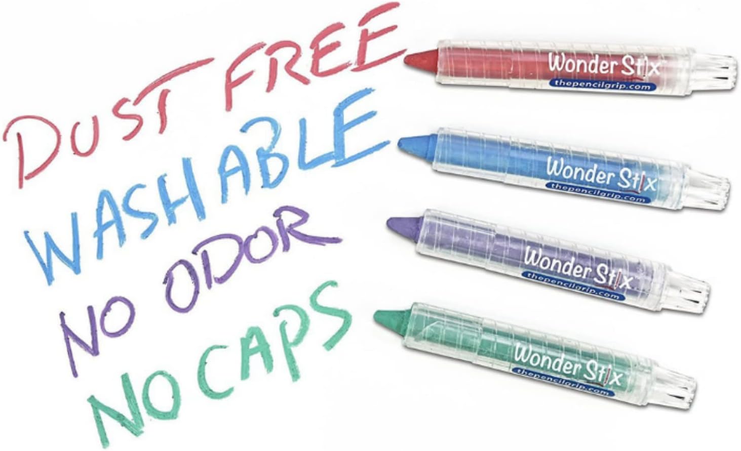 - Writes on whiteboards, chalkboards, paper, glass, wood, and cardboard